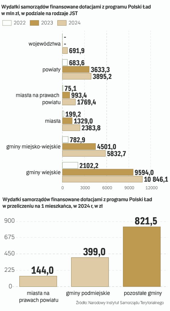 Nie wiadomo też, ile dokładnie za pieniądze z programu wybudowano dróg, wyremontowano instytucji, czy przeprowadzono kilometrów wodociągów czy kanalizacji, bo BGK, realizator programu, nie dysponuje informacjami o łącznych efektach rzeczowych zrealizowanych inwestycji. Zwrócił na to ostatnio uwagę prof. Paweł Swianiewicz, dyrektor Narodowego Instytutu Samorządu Terytorialnego, w analizie „Ład obiecany: Polski Ład – program inwestycji strategicznych – od obietnic i czeków do realnych wydatków”.