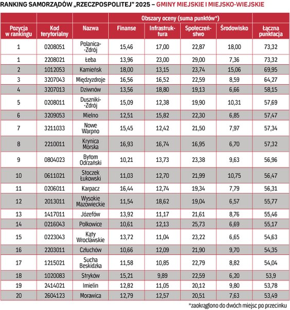 Zasady ogólne rankingu. Celem Rankingu Samorządów jest ocena skuteczności działań władz miast i gmin na rzecz zrównoważonego rozwoju lokalnych wspólnot. Zrównoważonego, czyli z dbałością o jakość każdego rodzaju kapitału będącego w dyspozycji społeczności lokalnej: ekonomicznego (finansowego i infrastrukturalnego), społecznego oraz środowiskowego. Wraz ze zmieniającą się rzeczywistością i nowymi wyzwaniami wobec władz lokalnych, zmienia się również Ranking Samorządów. W 2025 r. uzupełniliśmy jego formułę o elementy związane z szeroko pojętym bezpieczeństwem, w tym bezpieczeństwem energetycznym. Dostosowaliśmy też układ wskaźników i sposób ich liczenia. Ocenie podlegają wszystkie miasta i gminy w Polsce z wyjątkiem Warszawy, w trzech odrębnych kategoriach: miast na prawach powiatu, gmin miejskich i miejsko-wiejskich oraz gmin wiejskich.