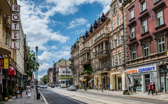 Po drugiej stronie koncepcja zakłada węższy chodnik o szer. 3,5 m, z przylegającym na 2,5 m tzw. pasem technicznym, z miejscem dla zieleni, ławeczek i punktów postoju dla rowerów.