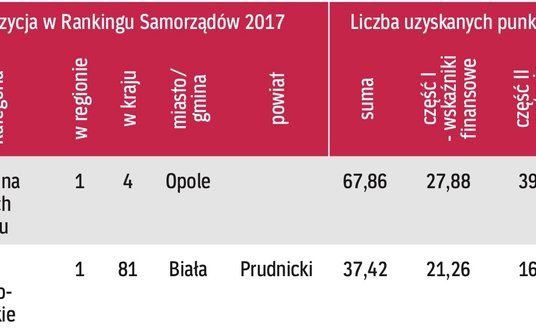 Opola nie trzeba mieszkańcom regionu przedstawiać, warto jednak zaznaczyć, że w naszym rankingu opolski samorząd bardzo dobrze wypadł zarówno w ocenie twardych wskaźników finansowych, jak w zakresie tzw. miękkich przedsięwzięć. Przykładowo w zeszłym roku udało się zwiększyć dochody budżetu o 81 mln zł w porównaniu z 2015 r., co było największym rocznym przyrostem na przestrzeni ostatnich lat. Z kolei wydatki na inwestycje to 96 mln zł, czyli aż o 35 proc. więcej niż rok wcześniej. Tymczasem większość samorządów w tym czasie doświadczyła głębokiej inwestycyjnej zapaści.