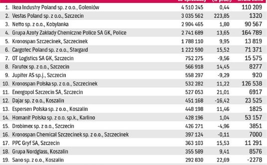 Region jest czołowym producentem wyrobów z drewna, korka, słomy i wikliny (15 proc. krajowej wartości produkcji sprzedanej w 2015 roku). W strukturze przemysłu województwa zachodniopomorskiego wybija się także: produkcja artykułów spożywczych (14 proc.), produkcja wyrobów z metali (8 proc.) oraz produkcja wyrobów z gumy i tworzyw sztucznych (6 proc.) i produkcja maszyn i urządzeń (5 proc.).