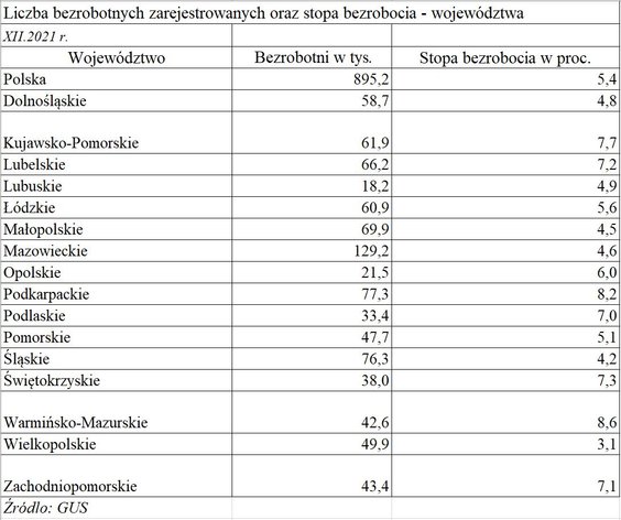 Największe bezrobocie jest w powiecie szydłowskim (województwo mazowieckie) wynoszące 22,3 proc. oraz w powiecie kętrzyńskim 18 proc. (województwo warmińsko-mazurskie). Najmniejsze w Poznaniu i całym powiecie Poznańskim oraz w powiecie kępińskim (wielkopolskie) – 1,6 proc.