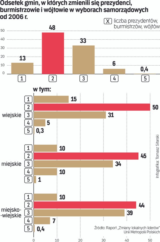 Autorzy nie zgadzają się z określeniem „zabetonowanie władzy lokalnej”. Pokazują, że gminy, w których od lat jest ten sam włodarz są nieliczne: w 15 proc. gmin wiejskich ten sam wójt pełni urząd od 2006 roku. Nie zmienił się również prezydent lub burmistrz w co dziesiątej gminie miejskiej lub miejsko-wiejskiej.