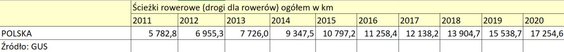 Od 2011 roku najwięcej dróg dla rowerów powstało w stolicy 385 km, w Warszawie jest niemal 670 km ścieżek rowerowych. We Wrocławiu niemal o połowę mnie 360 km, a w Poznaniu 276 km. W Polsce jest około 1000 gmin gdzie nie ma dróg rowerowych.